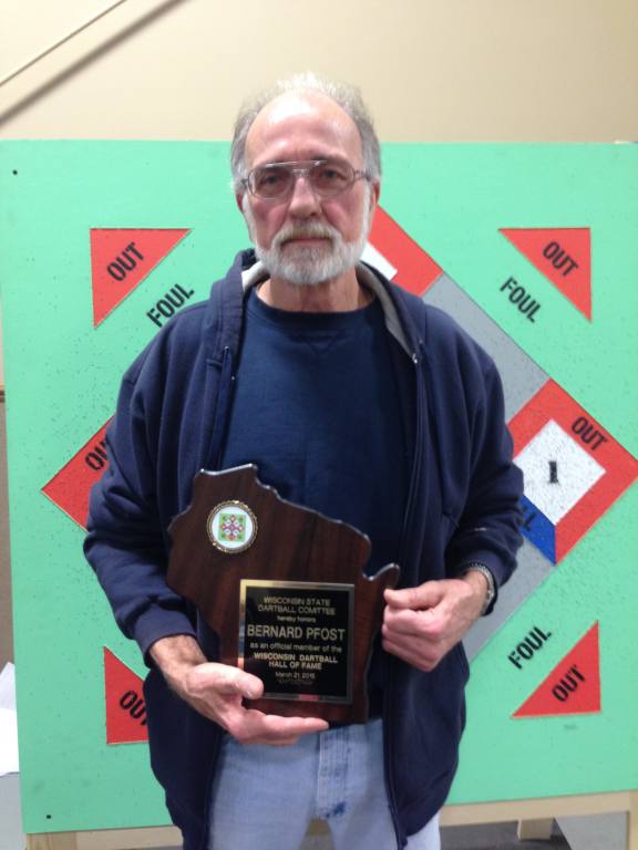 Played in the Racine Tabor League for 32 years. A consistent .500 plus average shooter, he won 19 batting championships and 20 high RBI titles, helping his team to win 20 league championships. Dave also won 3 state championships with the: AMC Pacers, Binder Plumbing, and The Dartball News.
