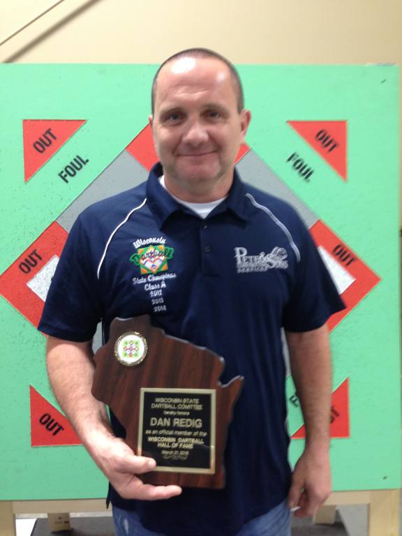 Started playing Dartball in 1974 at the age of 10 years old. He has played in the Interdenominational League, the Manitowoc County League, and now plays in the Oshkosh Leagues. Always one of the top average shooters, he has won multiple individual awards, and he has batted over .600 at least once in every league he has played in, including his best season ever of .639 in the Oshkosh League in 2014-15. He has played on 8 state class A champions, with Chissy’s Pub, Sportsman’s Lanes, and 6 times with Pete & Sons. Gumby as he is commonly known, has also served as league treasurer and team captain.