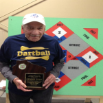 He didn’t start playing Dartball until the age of 45 in 1972. He shot in the West Allis – West Milwaukee 4 and 9 man leagues, with his best average of .562 in the mid 1980’s. He won his only state championship with Pleasant View Builders in 1981. He was best known for making basswood dart boards, and helping run many 2, 4, 7, and 9 man tournaments.