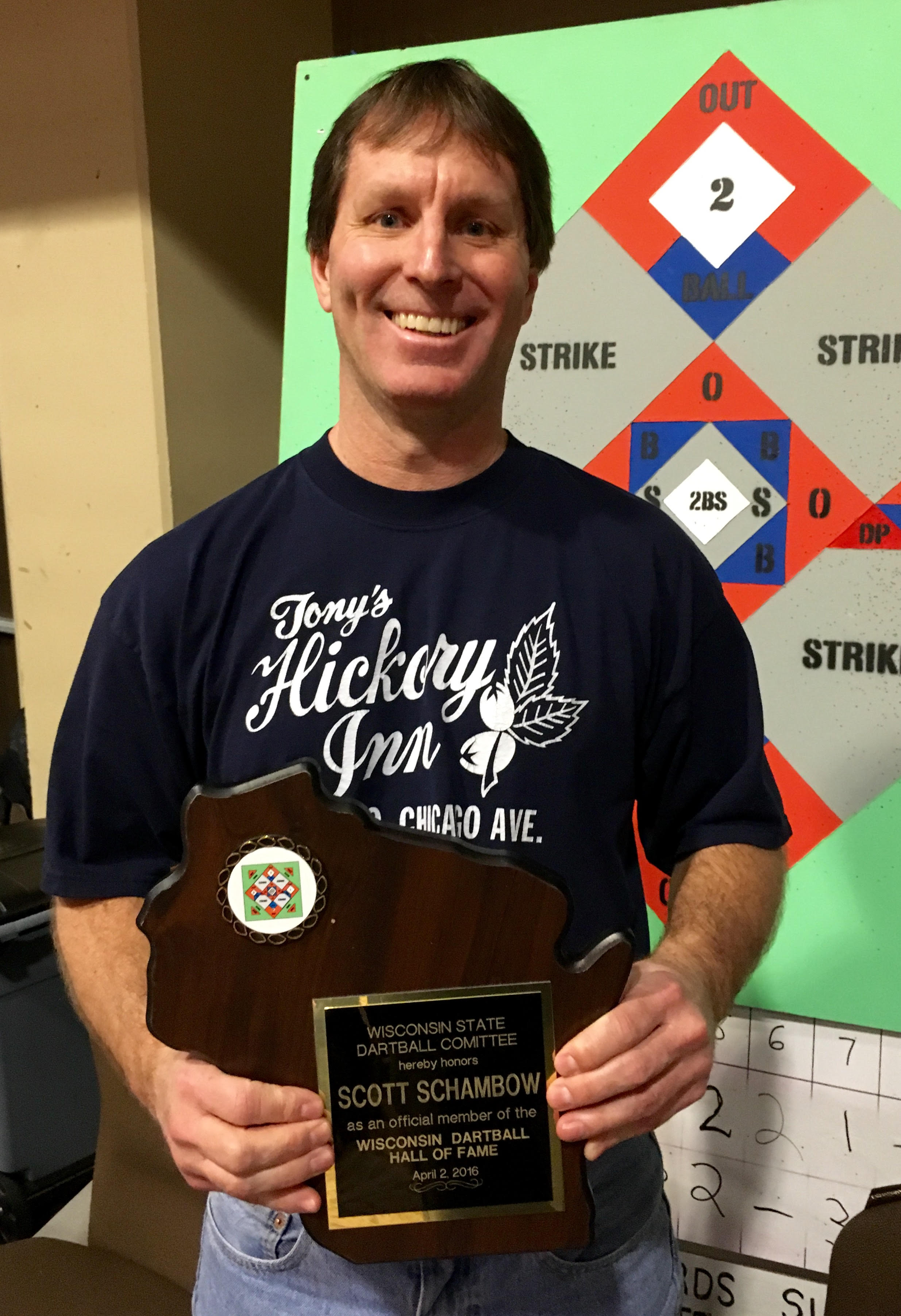 Started playing Dartball in 1978 at the age of 12 years old. Has played in the Lutheran Church, Muskego and South Milwaukee 4-man leagues, winning a championship in every league he has played in. He has a lifetime batting average of about .540, with his highest season ever of .635 in 2003 in the Muskego League. He has been a league team manager and has helped with running the South Milwaukee 2 and 4 man tournaments. Scott is also a 5 time class A state champion with the Hickory Inn and Hoenecke Painting teams.