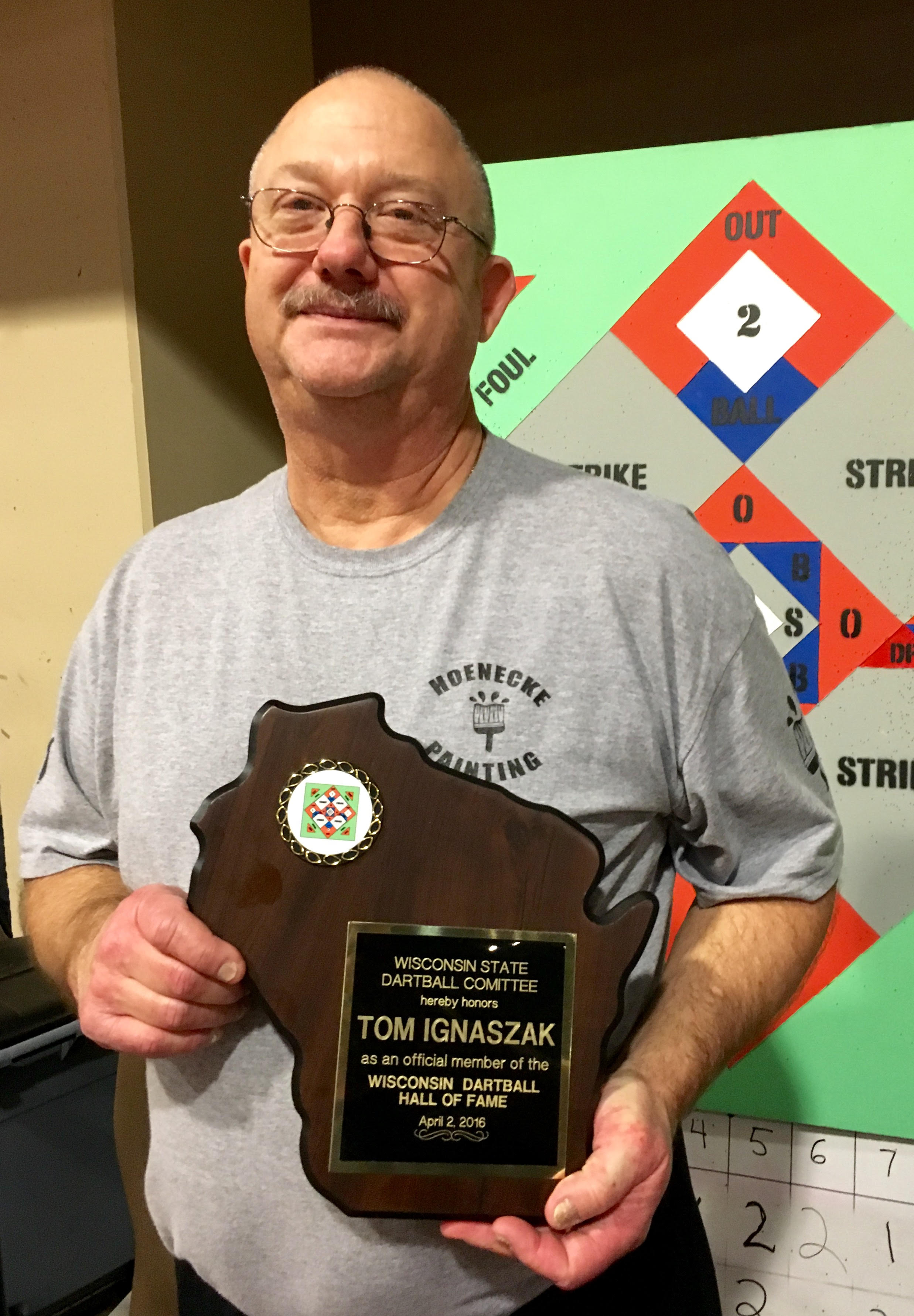 Started playing Dartball in 1981 at the age of 27 in the Thursday Bar League, which he continues to play. Also plays in the South Milwaukee 4 man league, where he had his highest league average of .560 in 2014. He has a lifetime average of around .520, and has won 2 state titles. Iggy has been a team manager for 34 years, and has helped organize many Milwaukee area tournaments.