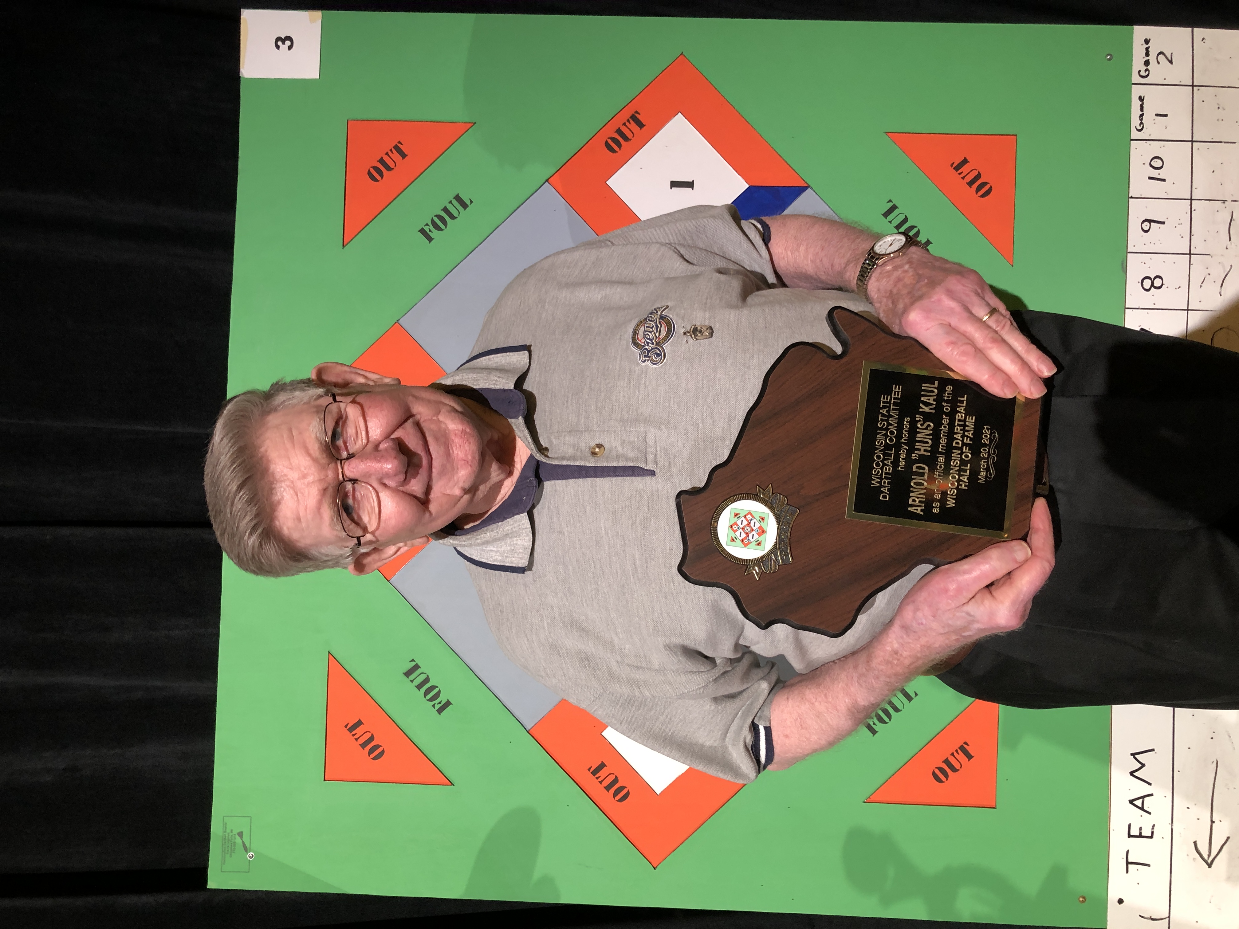 Huns started playing Dartball at the age of 14 for a youth league in 1947. He was an All Star in 1949-1950. He missed 2 years of Dartball while serving (drafted) in the US Army from 1956-1957. Huns has played Dartball for 67 years from 1947-2016, only taking the 2 years off while in the Army. He served as president of the league for 16 years from 1998 to 2014. He won the league RBI title in 2000 with 97 RBIs. His had many seasons over .500, with his high of .578 in 1980 in the Wauzaukee Lutheran Dartball League. Huns helped form a second team and served as captain of that team for the last 27 years. Huns has also won the shoot off title for 5 years and MVP award for his team for 7 years during his Dartball career.