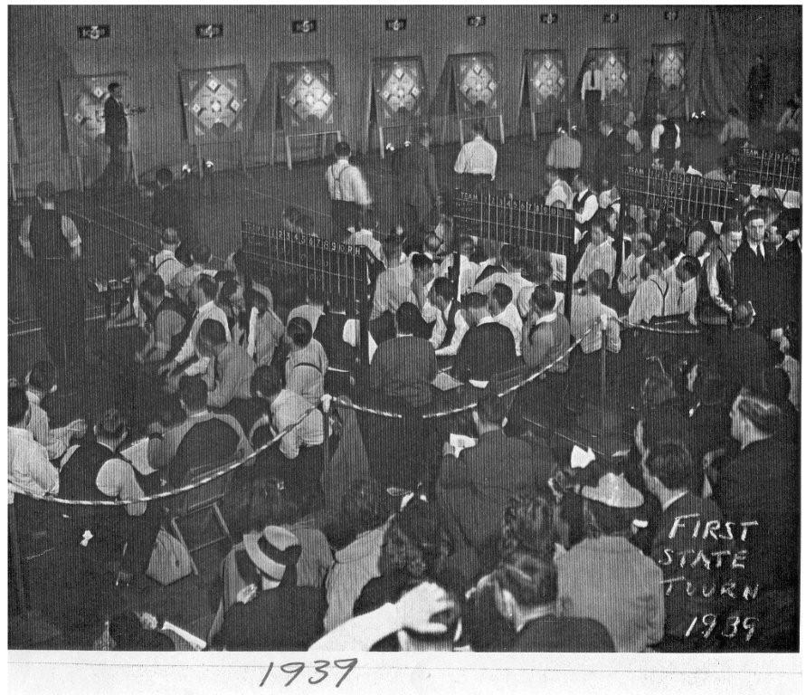 The first state Dartball Tournament was held in Wisconsin in 1939, probably in the Milwaukee area. Very little info is available from the early years of the state tournaments. Before the state committee was formed, when it came to the game of Dartball, there were numerous variations of the rules, regulations, and board layout existing throughout the state of Wisconsin. See Photo