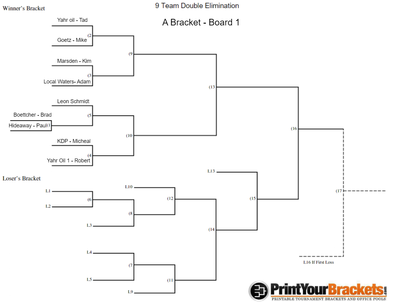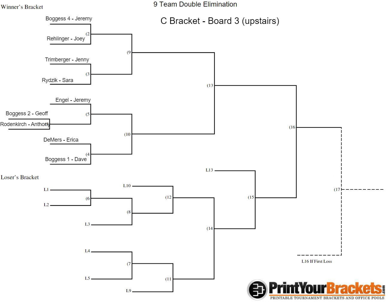 I will be sending out an email next week that has brackets and general information about the tournament. One board will be located in our upstairs bar and will be the "c" division.
